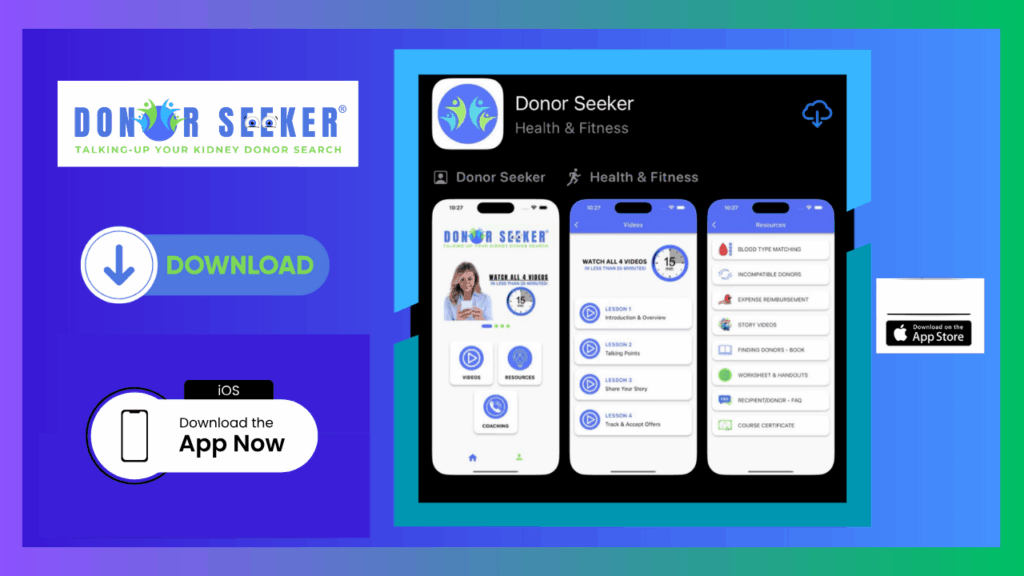 You’ll never have to experience that “ICK” factor as a “Donor Seeker.” The only thing you’ll be asking for is for help sharing your story and and expanding your search. Peek at the clips, then download the free app.